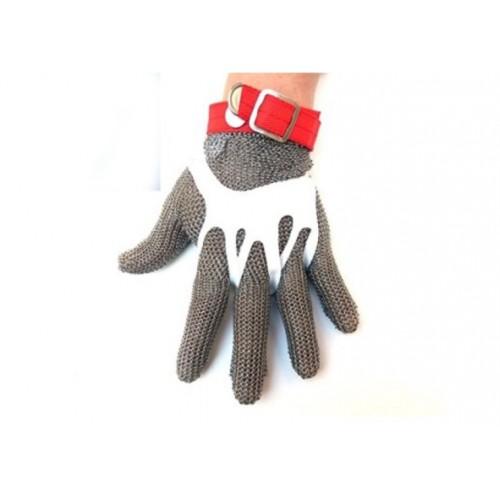 Προστατευτικό γάντι από ανοξείδωτο χάλυβα σχεδιασμένο και κατασκευασμένο σύμφωνα με τα ευρωπαϊκά πρότυπα προκειμένου να εξασφαλιστεί στο μέγιστο η ασφάλεια του χεριού. Το γάντι προσφέρει ένα ορισμένο επίπεδο προστασίας έναντι σε μαχαιριές ή περικοπές από ηλεκτρικά ψαλίδια κατά την χρήση. Είναι κατασκευασμένα από ανοξείδωτο χάλυβα. Το γάντι ταιριάζει με στο δεξί και το αριστερό χέρι (μόνο προς τα πίσω). Μεσαίου μεγέθους.