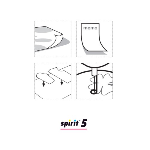Το SPIRIT 5 είναι μια νέα και αποτελεσματική φόρμουλα, προσωρινό αυτοκόλλητο σπρέι με ισχυρότερο κολλώδες αποτέλεσμα. Διευκολύνει την πολλαπλή επανατοποθέτηση. Χρησιμοποιείται για προσωρινή κόλληση υφάσματος, χαρτιού, ελαφρού χαρτονιού και πλαστικών σε άλλες επιφάνειες. Επιτρέπει πολλαπλή ένωση και διαχωρισμό στοιχείων χωρίς κίνδυνο μετατόπισης κόλλας από τη μία επιφάνεια στην άλλη.