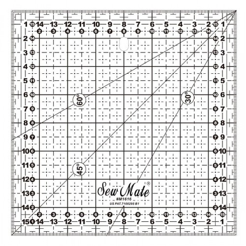 Χάρακας για patchwork-quilting τετράγωνος 30 x 30 εκατοστά. Είναι διάφανος με βοηθητικές γ..